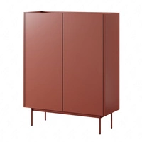 Komoda wysoka Vellore 97 cm ceglasta elegancka komoda z obniżonym blatem w dębowym odcieniu metalowe nogi bezuchwytowe fronty