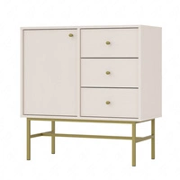 Komoda z szufladami Kioto III 84 cm beżowa nowoczesny design subtelne złote uchwyty metalowy stelaż idealna komoda do salonu