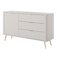 Komoda z szufladami Sula 150 cm beżowa elegancka i funkcjonalna komoda z ozdobnymi ryflowanymi frontami i metalowymi uchwytami
