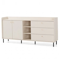 Komoda z szufladami Ferdi 194 cm beż piaskowy elegancki design wysokie ranty blatu fronty komody wzbogacone złotymi uchwytami