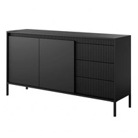 Komoda z szufladami Sesti 154 cm czarna nowoczesny i oryginalny design ciekawe połączenie ryflowania z gładkimi frontami
