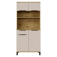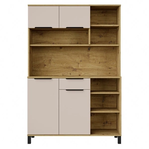Kredens kuchenny Soela 119 cm dąb artisan / beżowy bufet do kuchni doskonały do aranżacji małego aneksu kuchennego w mieszkaniu