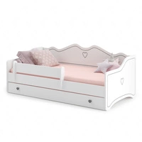 Łóżko Emily 80x160 cm białe dziecięce łóżko z materacem barierka ochronna szuflada z różowymi uchwytami w kształcie serca