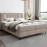 Łóżko kontynentalne Norco 140x200 ciemny beżowy stylowe łóżko z pojemnikiem oświetlenie umieszczone w zagłówku nadaje wyjątkowości