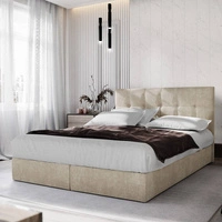 Łóżko kontynentalne Harmony 160x200 beżowy w nowoczesnym skandynawskim stylu z wezgłowiem wykończonym ozdobnymi guzikami