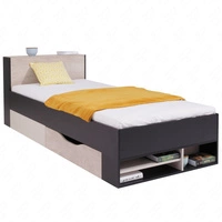 Łóżko z szufladą Niko 90x200 cm czarne / dąb / beżowe nowoczesny design łóżka wysuwane półki w zagłówku