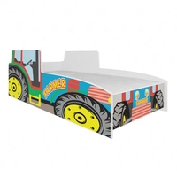 Łóżko Farmer 70x140 cm designerskie łóżko z materacem w kształcie traktora z ozdobnym nadrukiem wykonane z solidnych materiałów