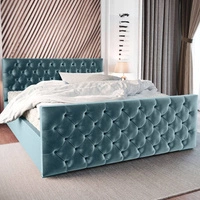 Łóżko tapicerowane Uberaba 160x200 błękitne z pojemnikiem w nowoczesnym skandynawskim stylu z pikowanym wezgłowiem i zanóżkiem z kryształkami