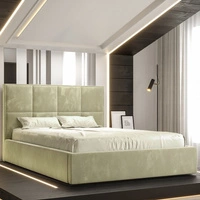 Łóżko tapicerowane Alvorada 160x200 beżowe z pojemnikiem w nowoczesnym skandynawskim stylu z pikowanym zagłówkiem