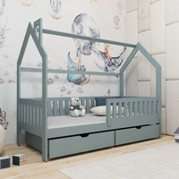 Łóżko dziecięce Miki 80x190 cm szare łóżko 2 osobowe wysuwane do pokoju dziecka łóżko domek wykonane z litego drewna sosnowego