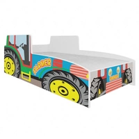 Łóżko Farmer 80x160 cm designerskie łóżko z materacem w kształcie traktora z ozdobnym nadrukiem wykonane z solidnych materiałów