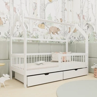 Łóżko drewniane Timon 70x140 cm białe nowoczesny design łóżko dziecięce domek wykonane z litego drewna sosnowego pojemne szuflady