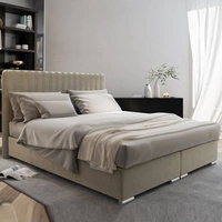 Łóżko kontynentalne Sarona 180x200 beżowe w nowoczesnym skandynawskim stylu z charakterystycznym wezgłowiem