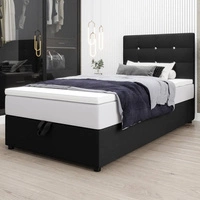 Łóżko kontynentalne Kingston 100x200 czarne w nowoczesnym skandynawskim stylu z tapicerowanym zagłówkiem z kryształkami łóżko z pojemnikiem