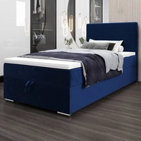 Łóżko kontynentalne Fargo 100x200 granatowe w nowoczesnym skandynawskim stylu z tapicerowanym zagłówkiem łóżko z pojemnikiem