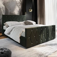 Łóżko kontynentalne Irvine 90x200 zielone stylowe łóżko z pojemnikiem na pościel i wysokim wezgłowiem zachwyca eleganckim designem