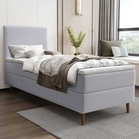 Łóżko kontynentalne Flint 140x200 beżowy w nowoczesnym skandynawskim stylu z pikowanym wezgłowiem