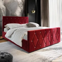 Łóżko tapicerowane Tifton 180x200 bordowe z pojemnikiem w nowoczesnym stylu z charakterystycznym wezgłowiem oraz z zanóżkiem wykończone kryształkami