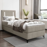 Łóżko kontynentalne Norco 90x200 ciemny beżowy stylowe łóżko z pojemnikiem oświetlenie umieszczone w zagłówku nadaje wyjątkowości