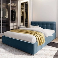 Łóżko tapicerowane Alvorada 160x200 błękitne z pojemnikiem w nowoczesnym skandynawskim stylu z pikowanym zagłówkiem