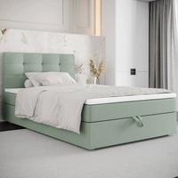 Łóżko kontynentalne Flint 100x200 miętowe w nowoczesnym skandynawskim stylu z tapicerowanym zagłówkiem łóżko z pojemnikiem