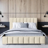 Łóżko tapicerowane Belli 140x200 beżowe stylowe łóżko z pojemnikiem na pościel wygodny zagłówek zachwyca eleganckim designem