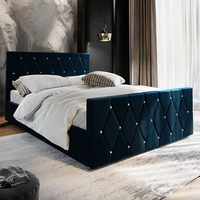 Łóżko tapicerowane Tifton 140x200 granatowe z pojemnikiem w nowoczesnym stylu z charakterystycznym wezgłowiem oraz z zanóżkiem wykończone kryształkami