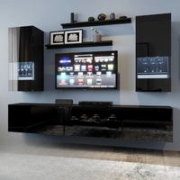 Meblościanka Tolo czarna / czarny połysk nietuzinkowa meblościanka o eleganckim charakterze idealna do salonu lub pokoju dziennego