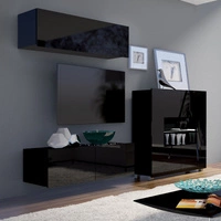 Meblościanka Sufli czarna / czarny połysk niezwykle stylowe meblościanka do salonu atrakcyjna pod względem wizualnym i funkcjonalnym