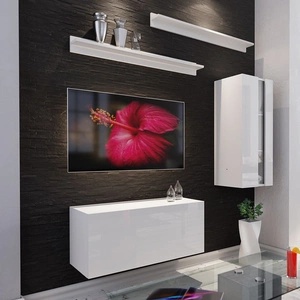Meblościanka Magnus biały połysk podwieszana pozwala zaaranżować kącik multimedialny w niezwykle nowoczesnym stylu