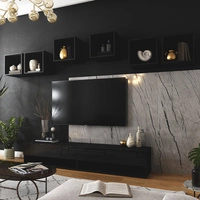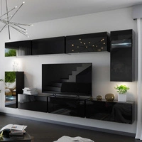 Zestaw mebli Psaru czarny / czarny połysk nowoczesny design meblościanka do salonu lub pokoju dziennego z frontami na wysoki połysk