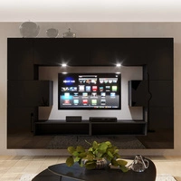 Meblościanka Nemea czarna / czarny połysk uniwersalna i stylowa meblościanka do salonu minimalistyczny design w nowoczesnej aranżacji