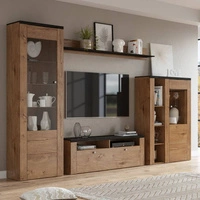 Meblościanka Silke matera / dąb wotan stylowe meble o eleganckim designie bezuchwytowe bryły meblościanka do salonu