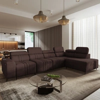 Narożnik z funkcją spania Castel IV szary brąz prawostronny stylowy narożnik z pojemnikami na pościel i regulowanymi zagłówkami