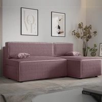Narożnik z funkcją spania Brandon wrzosowy prawostronny trójwymiarowa tkanina o wyrazistych prążkach pojemnik na pościel