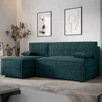Narożnik z funkcją spania Brandon turkusowy lewostronny miękka tkanina o charakterystycznej pętelkowej powierzchni pojemnik na pościel