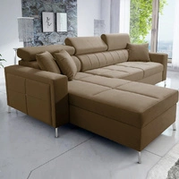 Narożnik z funkcją spania Nausa jasny brąz lewostronny velvet stylowy komfortowy narożnik regulowane zagłówki pojemnik na pościel