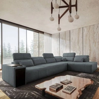 Narożnik z funkcją spania Tesalia VI niebieski lewostronny nowoczesny i komfortowy narożnik z funkcją przesuwanego oparcia