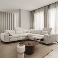 Narożnik z funkcją spania Kelly Sleek VI jasny brąz prawostronny nowoczesny design narożnik do salonu z regulowanymi zagłówkami