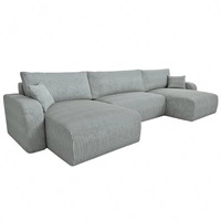 Narożnik z funkcją spania Fiesta U XL jasny szary elegancki narożnik do salonu z pojemnikiem na pościel sztruksowa tkanina
