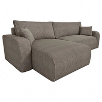 Narożnik z funkcją spania Brandon szary popiel prawostronny miękka tkanina o charakterystycznej pętelkowej powierzchni pojemnik na pościel