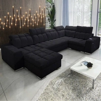 Narożnik z funkcją spania Fogu U II niebieski wygodny narożnik z komfortowymi podłokietnikami ciekawy design pojemnik na pościel