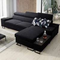 Narożnik z funkcją spania Flavio czarny prawostronny komfortowy elegancki narożnik z dostawką otwierany barek w boczku mebla