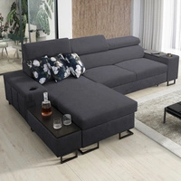 Narożnik z funkcją spania Flavio grafitowy lewostronny komfortowy elegancki narożnik z dostawką otwierany barek w boczku mebla
