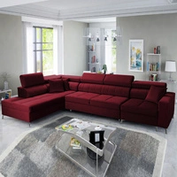 Narożnik z funkcją spania Nausa X bordowy lewostronny narożnik z dwoma pojemnikami na pościel wykonanie z tkaniny typu velvet