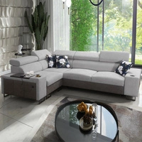 Narożnik z funkcją spania Cetara VII szary lewostronny wysokiej jakości narożnik do salonu z komfortowym przesuwanym oparciem