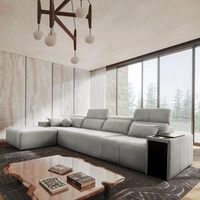 Narożnik z funkcją spania Tesalia XI szary lewostronny nowoczesny narożnik z komfortowym przesuwanym oparciem i pojemną szufladą