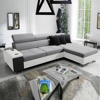 Narożnik z funkcją spania Castel III szary brąz prawostronny narożnik z dwoma pojemnikami na pościel regulowane zagłówki
