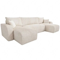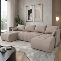 Narożnik z funkcją spania Fiesta U XL beżowy elegancki narożnik do salonu z pojemnikiem na pościel pleciona tkanina
