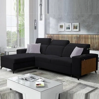 Narożnik z funkcją spania Hampton VIII czarny prawostronny nowoczesny design narożnik rozkładany do salonu funkcjonalna dostawka